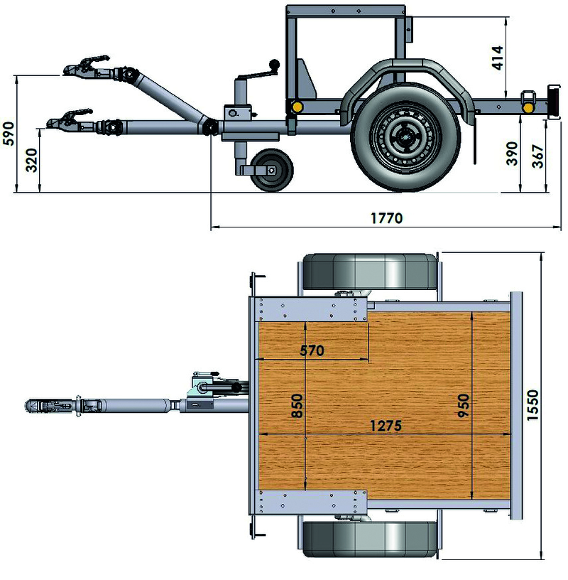 Spécialement développée pour recevoir les aspirateurs de feuilles MORGNIEUX, cette remorque est équipéé d’un essieu suspendu de 500 kg et d'un timon articulé pour s'atteler à l'arrière de tous types de véhicules munis d'une boule d'attelage.Elle est homologuée pour circuler sur les routes françaises et européennes, et est équipée de feux de signalisation. Elle ne nécessite ni permis remorque, ni carte grise individuelle (plaque d'immatriculation du véhicule qui le tracte). En option, elle peut être munie d'une roue de secours et d'un anneau de fixation pour remplacer l’attelage à boule.